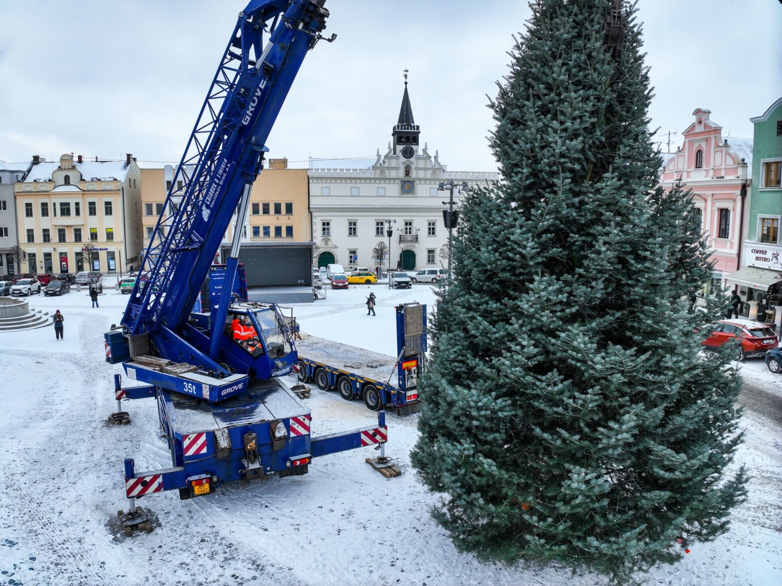 Naše technika opět pomáhala při vstyčení vánočního stromu na havlíčkobrodském náměstí.