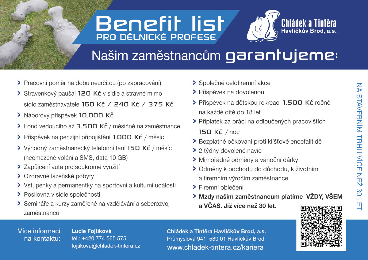 Kontaktovat nás můžete také na e-mail fojtikova@chladek-tintera.cz nebo telefonicky na číslo +420 569 400 530. Dovoláte se nám každý všední den mezi 6:30 – 15:30 hod. Děkujeme.